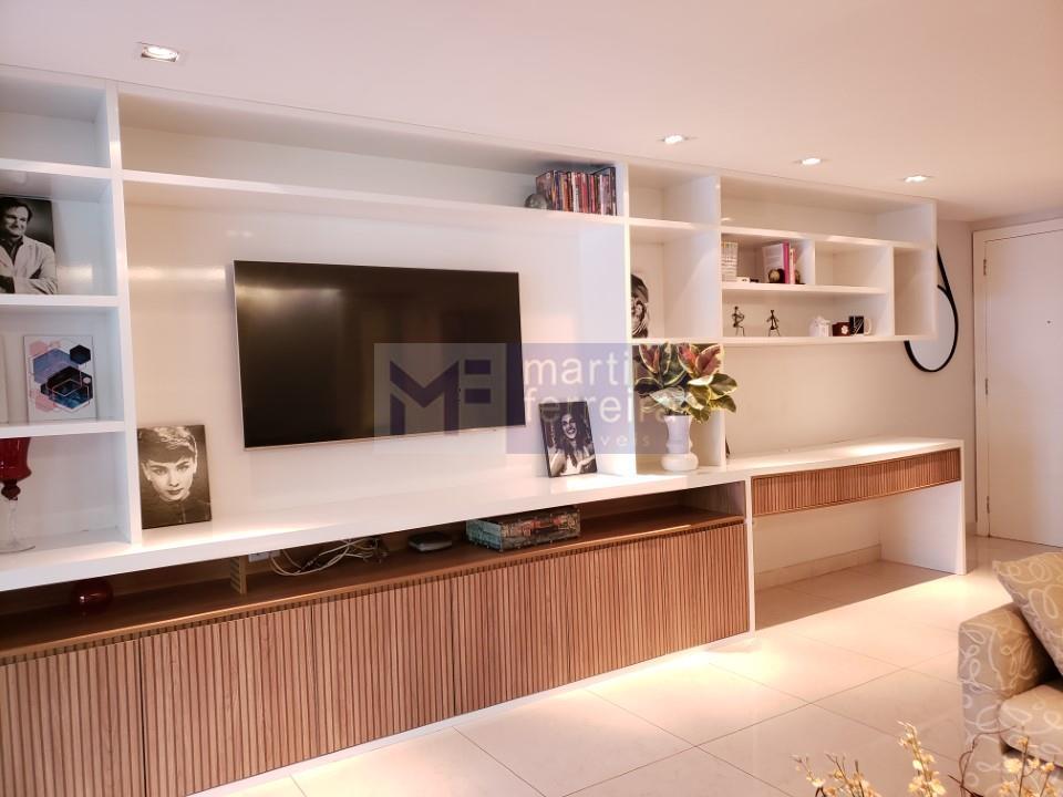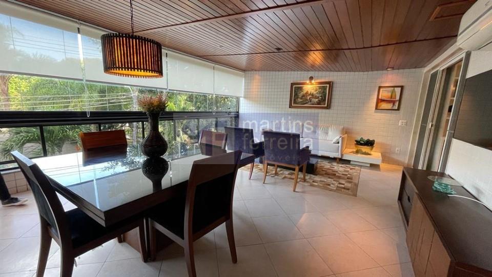 Martins Ferreira Imoveis oferece apartamento de 110 m totalmente mobiliado com moveis de primeira linha, todos os ambientes com ar condicionado split, varanda fechada com cortina de vidro, sala em 2 ambientes, banheiro social, quarto suite com closet, cozinha com armarios, geladeira e fogao, area de servico com maquina de lavar, banheiro de serviço. predio oferece piscina, e area de lazer, 2 vagas de garagem. Não aceita Pet.